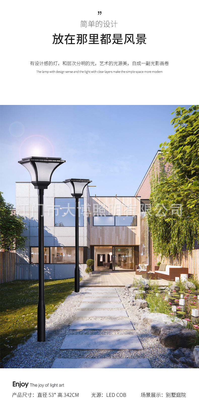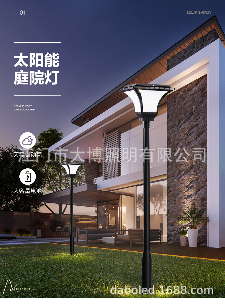 LED太陽能庭院燈公園道路照明簡約工業(yè)風路燈斜魔方3米鋁制廠家
