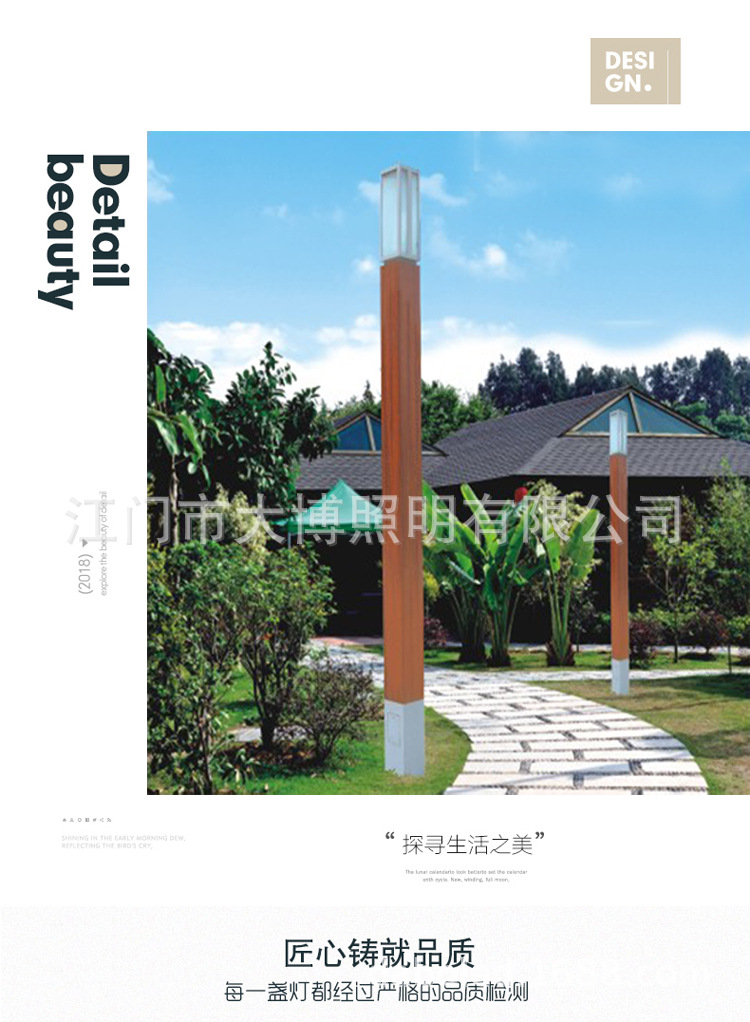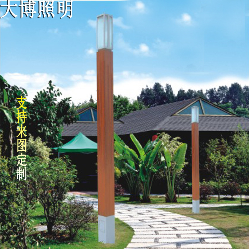 方形LED景觀燈特色木紋工藝鋁制簡約公園庭院景觀燈柱廠家批發