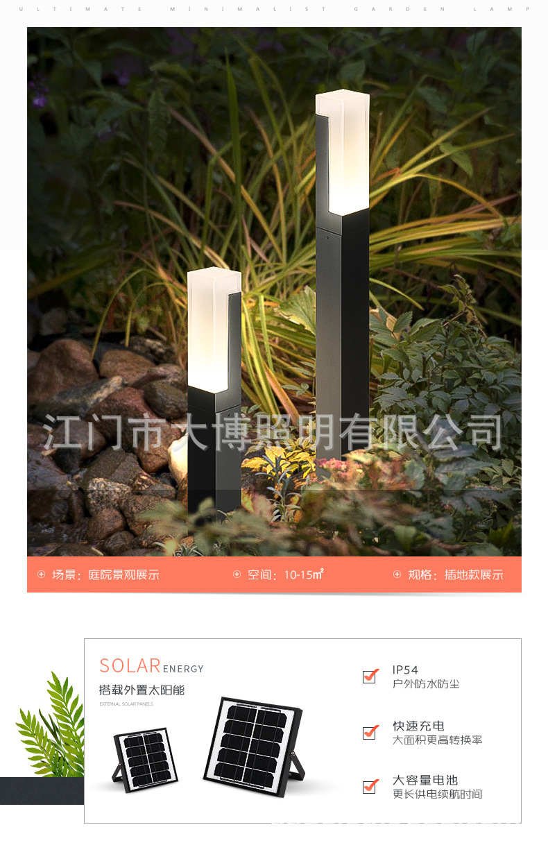 戶(hù)外LED太陽(yáng)能草坪燈公園草地照明亮化現(xiàn)代特色小方柱草坪燈批發(fā)