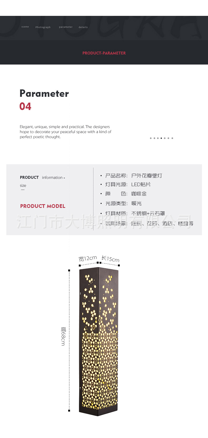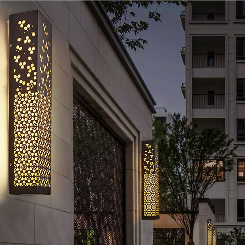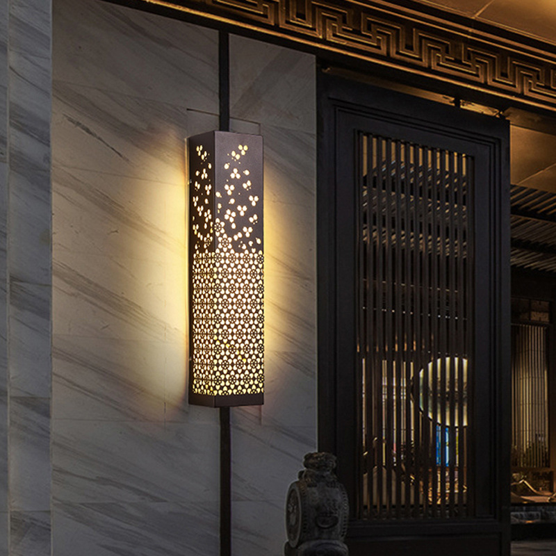 新款特色古韻典雅雕花不銹鋼制小區花園別墅庭院景觀照明LED壁燈